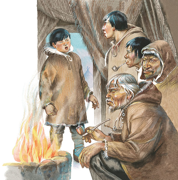 К концу этого дня женщины притащили тушу медведя, в то время как мужчины собирали совет. Когда Киш вернулся, за ним послали гонца, приглашая его прийти тоже, но он велел сказать, что голоден и устал и что его иглу достаточно велика и удобна и может вместить много людей.