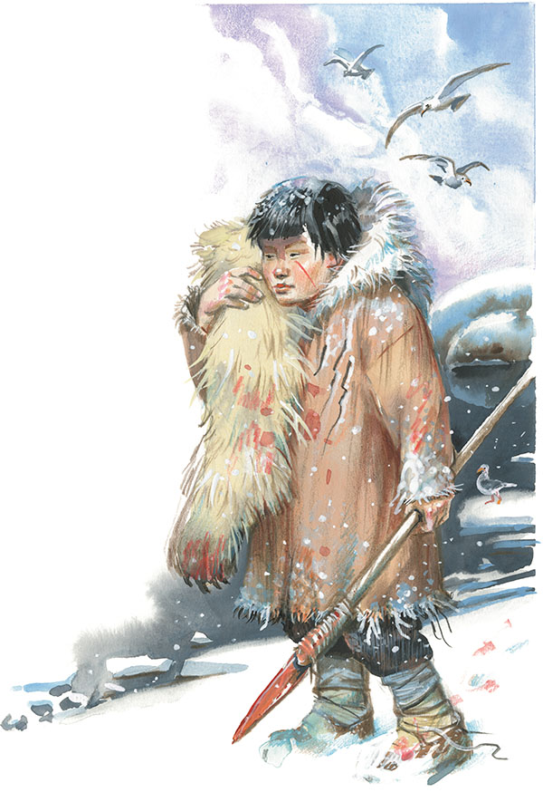 – Вы, мужчины, возьмите собак и нарты и ступайте по моему следу, – сказал он. – За день пути отсюда найдёте много мяса на льду – медведицу и двух медвежат.
