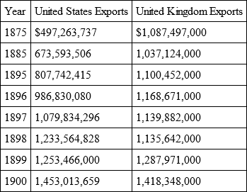 In the matter of iron, the United States, which in 1840 had not dreamed of entering the field of international competition, in 1897, as much to her own surprise as any one else’s, undersold the English in their own London market. In 1899 there was but one American locomotive in Great Britain; but, of the five hundred locomotives sold abroad by the United States in 1902, England bought more than any other country. Russia is operating a thousand of them on her own roads today. In one instance the American manufacturers contracted to deliver a locomotive in four and one-half months for $9250, the English manufacturers requiring twenty-four months for delivery at $14,000. The Clyde shipbuilders recently placed orders for 150,000 tons of plates at a saving of $250,000, and the American steel going into the making of the new London subway is taken as a matter of course. American tools stand above competition the world over. Ready-made boots and shoes are beginning to flood Europe, – the same with machinery, bicycles, agricultural implements, and all kinds of manufactured goods. A correspondent from Hamburg, speaking of the invasion of American trade, says: “Incidentally, it may be remarked that the typewriting machine with which this article is written, as well as the thousands – nay, hundreds of thousands – of others that are in use throughout the world, were made in America; that it stands on an American table, in an office furnished with American desks, bookcases, and chairs, which cannot be made in Europe of equal quality, so practical and convenient, for a similar price.”