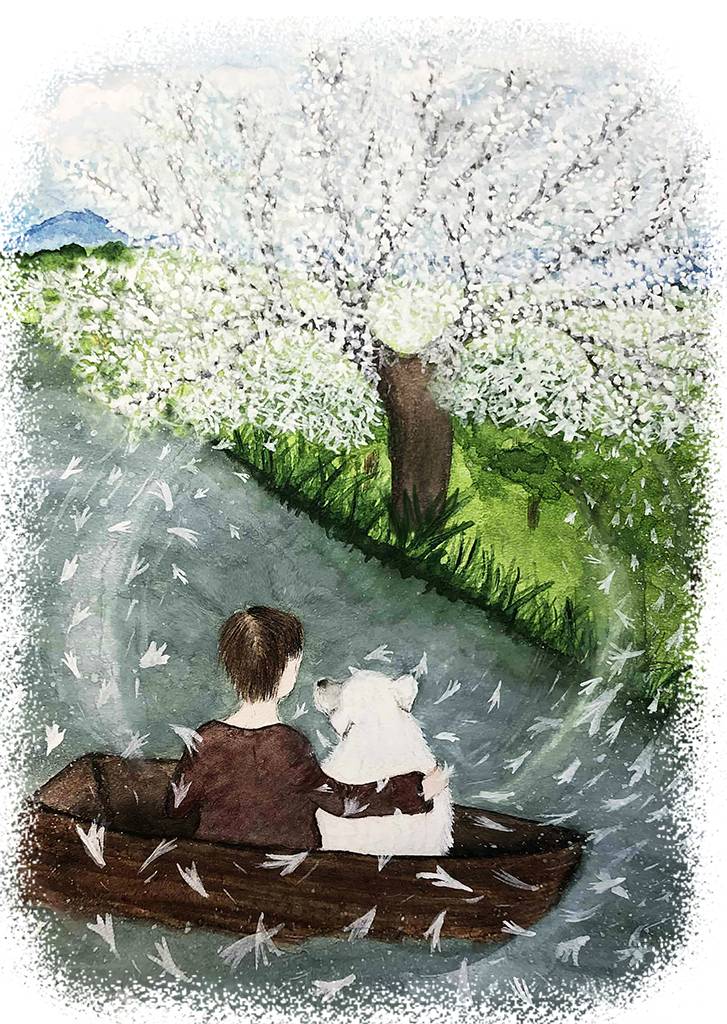 – Смотри, Луч! Я такого не видел раньше… – Май приподнял голову собаки, после чего она села рядом. Неожиданно подул приятный ветер, ветви дерева зашевелились, словно танцуя, и белые лепестки цветов стали срываться и кружить вокруг лодки вихрем. Лепестков становилось все больше, а вихрь прекрасней. Май был переполнен любовью и счастьем, от этих чувств или силы вихря, тело казалось невесомым. Май обнял Луча еще сильнее, разделяя с ним этот прекрасный момент.