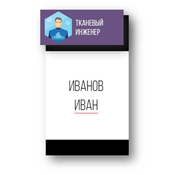 Пример оформления бейджа с вкладышами-названиями профессий