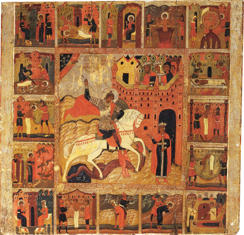 Чудо Георгия о змие, с житием в 16 клеймах