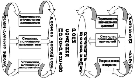 – Содержание роли объединяет авторскую, режиссерскую и исполнительскую позиции, при этом в воображении и предвкушении актера удерживается позиция воспринимающих: актеров, соавторов по сцене и зрителей.
