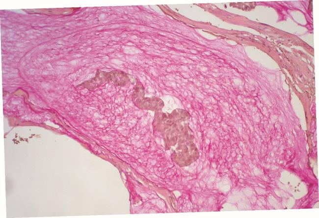 Приданию интенсивной розовости содержащейся в препаратах слизи при окрашивании муцикармином мы обязаны некоторым клопам, питающимся кактусами (здесь как раз представлены островки клеток слизистого рака молочной железы, плавающие среди слизистых озер).