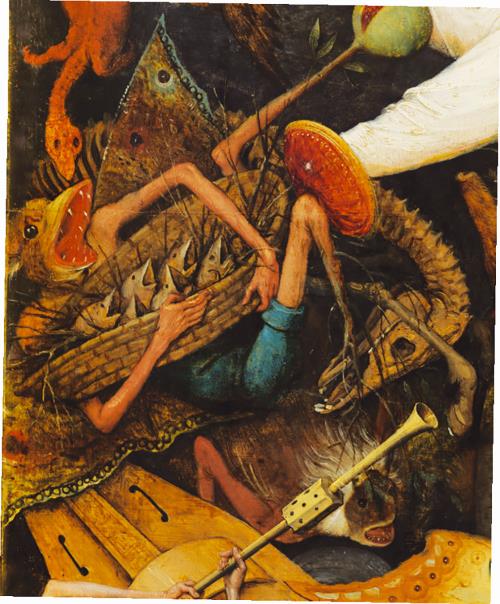 Питер Брейгель Старший. Падение мятежных ангелов, фрагмент «Бесшабашный демон в синих штанах».