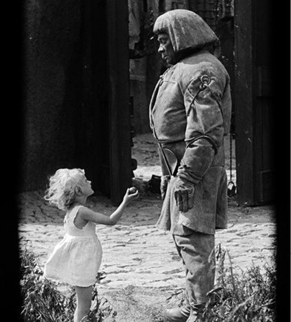 María, la niña campesina con la que se encuentra la criatura, con el mismo nombre de la madre literaria de Frankenstein, representa la inocencia del propio monstruo, quien al tampoco conocer límites éticos y morales, termina provocando que ella se ahogue. Esta dicotomía entre la fuerza bestial y la ingenuidad hace que el gigante piense que igual que las flores, la pequeña va a flotar en el lago. Su acción nos recuerda que, a fin de cuentas es un recién nacido, un potro que torpemente se tropieza al dar sus primeros pasos. La criatura tiene pulsaciones que retumban en su cerebro criminal, heredado por algún Barrabás.