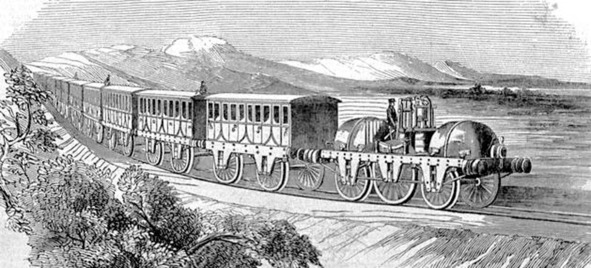 Пневмолокомотив Андро. 1844 г. Изображение из Энциклопедии