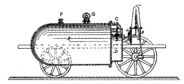 Ёмкость резервуара составляла от 8 до 10 м3 при давлении до 20 ат. Похоже, что цилиндры были внутри рам сзади и действовали на среднюю ось. Энциклопедия утверждает, что локомотив был «двойного действия»; это может означать или что цилиндры были двойного действия, или что использовалось компаундное расширение. Вероятно, это было сделано впервые; если компаундное расширение действительно использовалось, то оно было применено на 50 лет раньше Ходжеса и Портера (см. ниже).