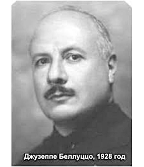 Джузеппе Беллуццо родился в Вероне в 1876 г. Он преподавал в Милане, а затем в Риме и был автором более пятидесяти технических книг. Его годы преподавания и написания книг, вероятно, вдохновили многих молодых итальянских инженеров и студентов с двойным гражданством Италии. Он принимал участие в установке турбин на итальянских крейсерах и линейных кораблях. Во времена фашизма Беллуццо был избран в парламент и был министром национальной экономики с 1925 по 1928 г. Он утверждал, что заставил поезда работать вовремя… Умер в Риме 21 мая 1952 г.