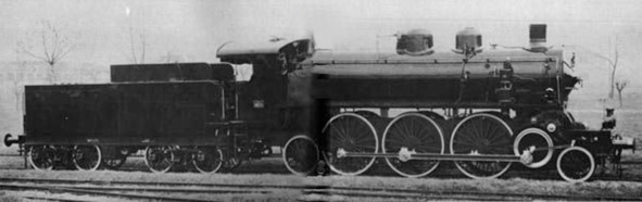 Турбина и отбойный вал этого локомотива находятся спереди. Турбины переднего и заднего хода, построенные на Schwartzkopff, были установлены на одном валу с управлением форсунками группой из четырёх клапанов. В начале испытаний выяснилось, что подшипник турбины заклинило, что привело к серьёзному повреждению лопаток. Турбина не была восстановлена, и испытания были оставлены; это был конец паротурбинных экспериментов в Италии. Масса локомотива 72 т, длина неизвестна, поверхность нагрева 191 м2, давление в котле 12 ат, максимальная частота вращения турбины 7000 об/мин.