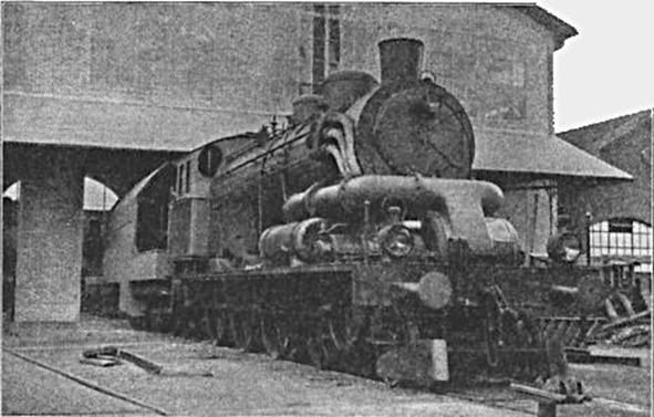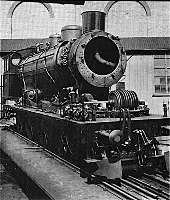 Это, вероятно, одна из официальных фотографий. На ней хорошо виден привод от отбойного вала. Этот передовой локомотив всё ещё имеет масляную лампу спереди. Обращает на себя внимание необычная форма охлаждающего тендера.