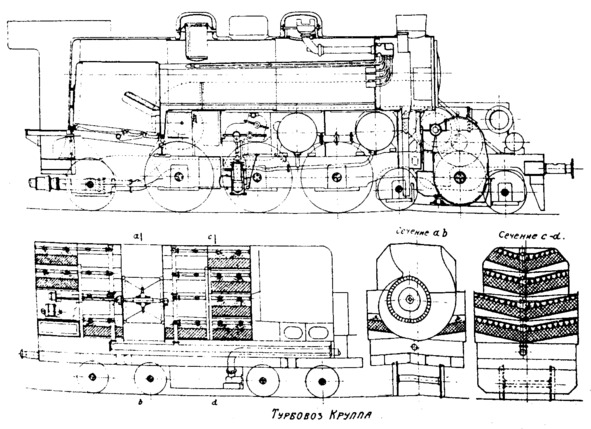 Схематический чертёж турбовоза Круппа-Цёлли.