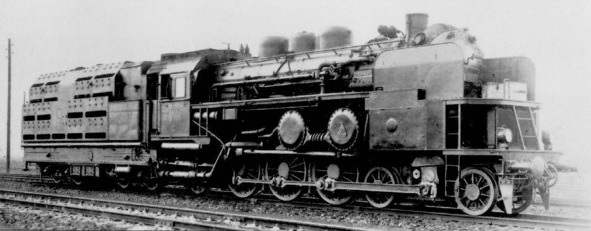 Швейцарский локомотив Цёлли. Этот малоизвестный швейцарский локомотив, построенный компанией SLM/Escher-Wyss/Zoelly в 1920 г., был первым серьёзным турбинным проектом. По некоторым причинам он не упоминается в большинстве книг о локомотивах. Это было переоборудование старого локомотива типа 1—3—0 федеральных железных дорог в турбовоз типа 2—3—0. У нового локомотива была шестиступенчатая швейцарская импульсная турбина Цёлли, расположенная поперечно перед дымовой коробкой, отдельная двухступенчатая турбина Кёртиса, используемая для заднего хода. Подача пара контролировалась двумя наборами клапанов. Основная турбина развивала мощность 1200 л.с. и приводила в движение спаренные колёса через двухступенчатую редукторную передачу с отношением 1:28, карданный вал и соединительные тяги. Частота вращения турбины составляла 7500 об/мин при запланированной максимальной скорости 75 км/ч. Феликс Брун говорит, что, кажется, было три разных версии конденсатора. Первым был поверхностный конденсатор под котлом. Он оказался неудовлетворительным, поэтому его заменили два длинных поверхностных конденсатора по бокам, где пар проходил через трубки конденсатора, окружённые водой. Затем они были снова заменены двумя поверхностными конденсаторами, установленными ниже по бокам. Теперь вода проходила через трубопровод конденсатора; это обычная практика в конденсаторах для электростанций и т. д. На тендере сначала был охладитель водяного распыления с естественной тягой, который позже был заменён версией с принудительной тягой с отдельной турбиной для привода вентилятора. Два поверхностных конденсатора были размещены с обеих сторон котла, используя охлаждающую воду из тендера. Эта вода возвращалась в тендер турбонасосами. Котёл обычного локомотивного типа с дымогарными трубами имел рабочее давление 11,5 ат. Конденсационная система естественным образом предотвращает использование обычной выхлопной трубы для тяги котла, и она сначала обеспечивалась с помощью воздуходувки холодного воздуха под решёткой. Эта весьма необычная конструкция позволила избежать условий работы вытяжного вентилятора в нагретом до 300°C отработавшем газе, создававших проблемы во многих последующих конденсационных локомотивах. Но при этом топка находилась под избыточным давлением, и воздуходувку приходилось останавливать каждый раз, когда нужно было забрасывать топливо. Эта чрезвычайно опасная система (можно надеяться, что воздуходувка и топочные дверцы были заблокированы, но история об этом молчит) вскоре была заменена вытяжным вентилятором, установленным на двери дымовой коробки.