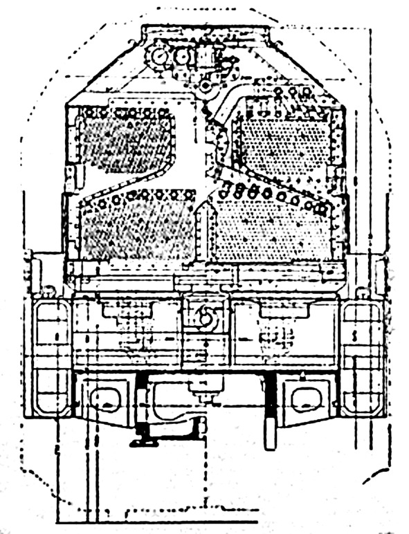 Поперечное сечение передней части турбинного тендера Т38. Рисунок с сайта «The Self Site: Unusual Steam Locomotives».