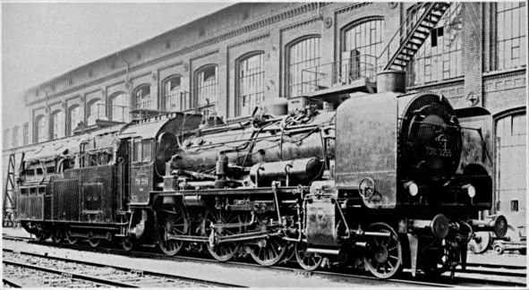 Паровоз завода Henschel с турбинным бустером на тендере. Использование мятого пара поршневых машин для турбин низкого давления до некоторых пор считалось сложным и практически трудноосуществимым, но позднее французская фирма Rateau применила этот метод для модернизации устаревших паромашинных установок14.