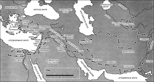 Македонская армия, которой после смерти отца командовал Александр, была, как никогда раньше в Греции, превосходно организована, вооружена и обучена. Филипп объединил прежних македонских рекрутов и собственные царские вассальные войска в единую силу, включавшую все рода войск, в которой «территориальная армия» служила тактической опорой решающих действий «царской армии». Последняя состояла из двух элитных частей – кавалерии сподвижников и гипаспистов. Македонские конники всегда были на высоте, и теперь их роль в бою состояла в нанесении решающего удара на флангах или в бреши в тот момент, когда противника останавливала фаланга. Кавалерия состояла из восьми эскадронов во главе с командиром, каждый насчитывал по двести – триста конников. Они носили кирасы и были вооружены коротким копьем. Гипасписты были пешими воинами, вероятно вооруженными как гоплиты, но считавшимися профессиональной элитой. Их главное назначение состояло в том, чтобы в ходе боя обеспечивать тактическую связь между конницей и остальной фалангой. Но иногда они также двигались вслед за конницей, участвовали в ночных бросках и в штурме укреплений. Они подразделялись на три батальона по тысяче человек каждый. Царскую гвардию составляли батальон гипаспистов и эскадрон кавалеристов. Сам Александр обычно становился во главе кавалеристов, но время от времени возглавлял гипаспистов и фалангу, а однажды даже лучников.