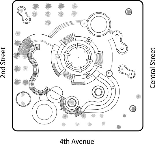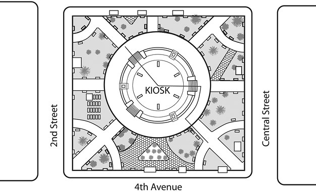 Ил. 3.5. План парка Сентраль 1993 года (Муниципалитет Сан-Хосе, переработка Эрин Лилли). Слева направо: 2‐я улица; 4‐й проспект; Авенида Сентраль