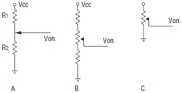 Для создания переменного делителя напряжения можно использовать переменный резистор, как показано на рис. 5.2В и 5.2С. Я предпочитаю схему 5.2А как самую простую.