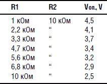 Таблица 5.1. Двухрезисторный делитель напряжения