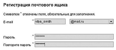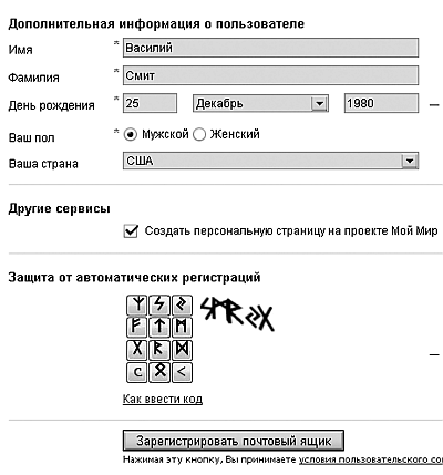 Процедура регистрации стандартна на всех почтовых серверах: общие элементы есть везде.