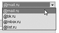 4. В нашем случае на первом этапе необходимо будет ввести название вашей почты в поле E-mail (то есть то, что будет стоять слева от знака «@» в вашем будущем адресе), имя в поле Ваше имяи фамилию в поле Фамилия.При желании вы можете выбрать себе и имя домена, то есть те буквы, которые будут стоять справа от «собачки»: на выбор есть четыре имени (рис. 2.8).