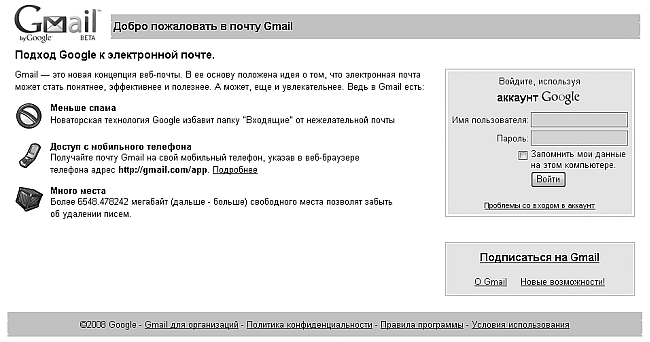 Рис. 2.12. Почтовая система Google Mail (GMail)