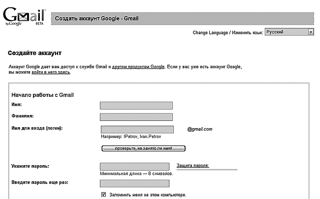 Рис. 2.13. Стартовое окно регистрации в GMail