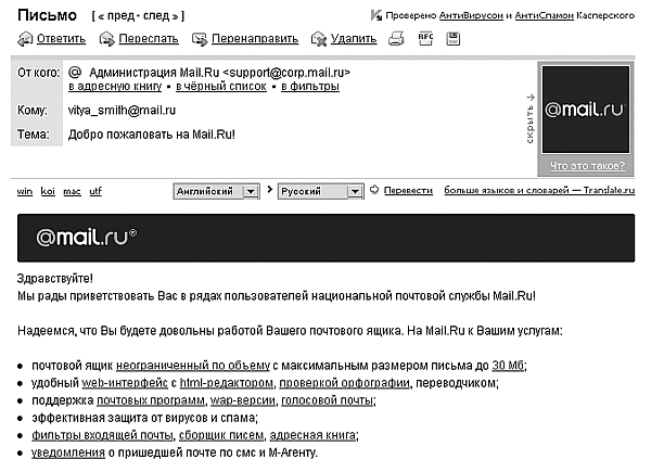 Рис. 2.14. Веб-интерфейс электронного почтового ящика в системе Mail.Ru