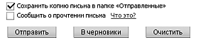 7. Все закончено: теперь вы можете отправить письмо немедленно (кнопкой Отправить), удалить без сожаления (кнопка Очистить) либо дописать позже (нажав на кнопку В черновики) (рис. 2.23).