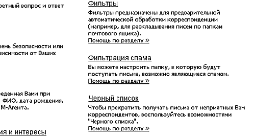 Рис. 2.24. На этой странице с большим количеством текста надо отыскать пункт Фильтрация спама