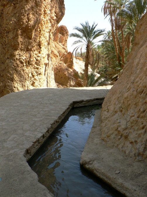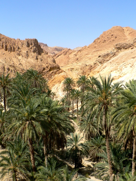 Так начинается ряд селений-оазисов на самом юге обитаемого Туниса. Здесь на собственной шкуре, особенно на жаре выше 50ти, быстро начинаешь понимать смысл выражения «оазис – это рай для путника». Тут можно укрыться в долгожданной тени изумрудных садов. Запутанные каменные тропинки выведут к небольшому, мутному, но реальному водопаду, струящемуся откуда-то из глубин песчаных оранжевых гор.
