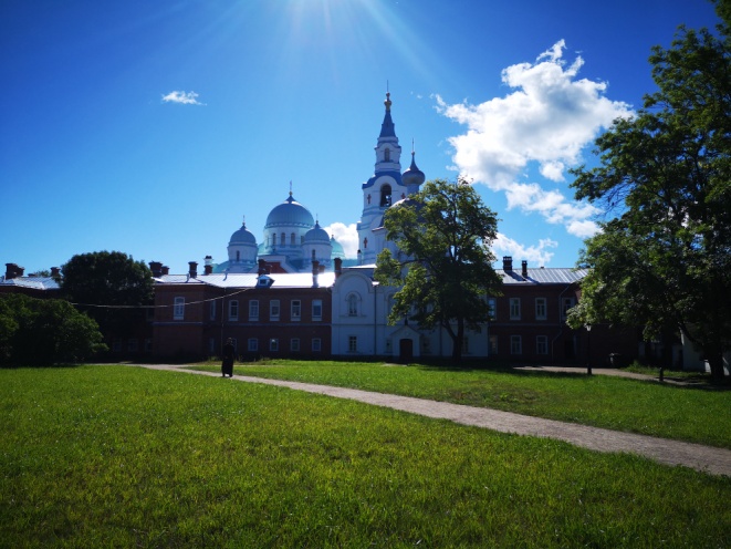 Сам монастырь и постройки вокруг него довольно быстро утомили меня. Валаам достаточно удален от большой земли, и добраться до него любому желающему зеваке не так-то просто, если он специально не задастся такой целью, но все-таки, как по мне, так на каждой тропинке там, в каждом, сначала кажущемся потаенном, уголке остро ощущается присутствие туристов. И хотя в августе 2020го таковых там было, прямо скажем, не так уж и много, однако ориентирование на всевозможные удобства и комфорт словно бы витало в воздухе. И нет в том абсолютно ничего плохого: вовремя попавшаяся на пути сырная лавка с местной рикоттой действительно может стать находкой для истинного гурмана, как бы случайно встретившаяся беседка с небольшим вокальным ансамблем наготове воистину усладит тонкий слух меломана… Все это понятно и адекватно условиям сурового быта.