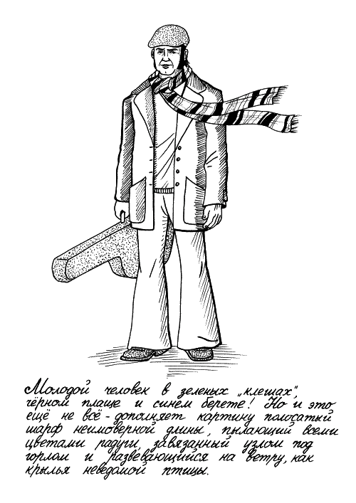 «Встречают по одежке, провожают по уму» – гласит старинная русская пословица. Рано уяснив эту непреложную истину, в молодости я часто менял разные наряды и прически. Недавно рассматривал старые фотографии, и одна меня особенно развеселила – на ней улыбается молодой человек в зеленых «клешах», черном плаще и синем берете! Но и это еще не все – дополняет картину полосатый шарф неимоверной длины, пылающий всеми цветами радуги, завязанный узлом под горлом и развевающийся на ветру, как крылья неведомой птицы. Не греет, зато издалека видно, что идет не какой-то там секретарь комсомольской ячейки, а начинающий автор, всем своим видом подчеркивая принадлежность к творческим кругам. Конечно же, полная безвкусица, но ее можно простить, списав на молодость.