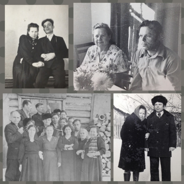 Нижний ряд (слева направо): роддом, где родилась я, все мои братья и младшая сестренка; я на фоне школы, которую построила бригада моего отца и в которую я пошла первый раз в первый класс.