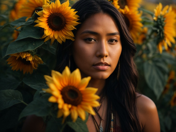 In Native American cultures, there is a legend that speaks of the sunflower as a symbol of adoration and devotion. According to the tale, a young maiden fell deeply in love with a warrior who set off on a perilous journey. As he left, the maiden vowed to wait faithfully for his return.