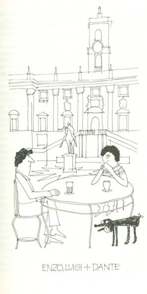 Enzo waited for a while, still watching as the two English women called for a taxi at the foot of the stairs and were driven away in it, and then he whistled nonchalantly in the direction of the church of Santa Maria in Aracoeli. Immediately Luigi and Dante, the dog he was walking, came running across: