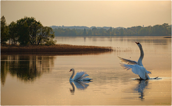Отвернулась милая подруга,Словно и не замечает,Равнодушием ее испуган,Лебедь крылья протянул в отчаянии,А лебедушка вся в ожидании,В полноте божественного вкуса,Сладкого лишь в таинстве слияния,Когда страх забудется у труса.Досуг