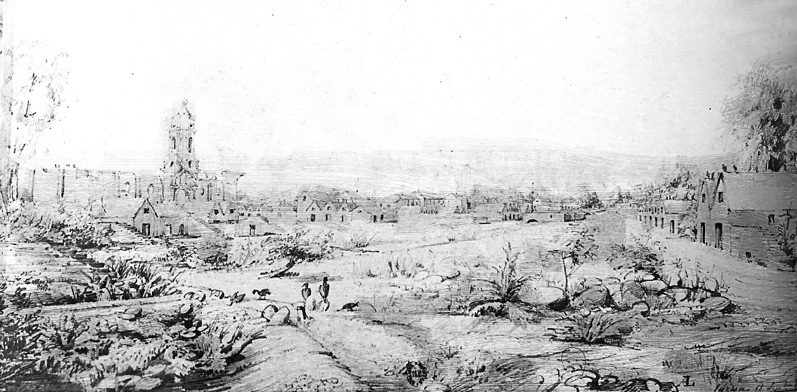 Dibujo de Johann Moritz Rugendas (10 enero de 1845). Fuente: Rugendas, 1975, p. 236.