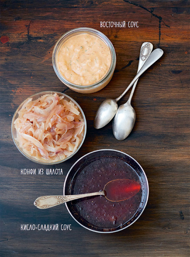 • Очистите и измельчите 1 луковицу среднего размера. Положите в кастрюлю. Добавьте 150 мл красного винного уксуса, 70 г сахара, 100 мл воды, 2 щепотки молотого острого перца и соль. Доведите до кипения и варите 30 минут на среднем огне, периодически помешивая. Выключите огонь и дайте соусу остыть.