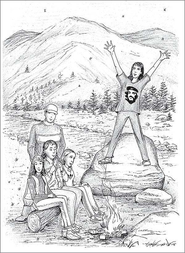 Тут Дмитрий, который стоял в сторонке, насмешливо поглядывая на дрожащих девчонок на бревне, задиристо спросил, сверкнув в темноте «чегеваровскими» горящими очами: