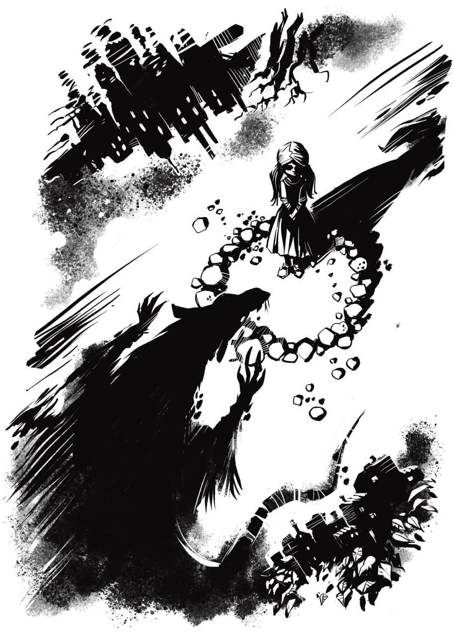 Мик сунул мешок на корму, забрался в лодку и, отталкиваясь шестом, вышел на середину реки. Здесь он развернул лодку по течению, принюхался к воде – она пахла палыми листьями и гниющими фруктами. Тогда он лег на дно, уложил рядом с собой гравюру с Девочкой. Они укрылись одеялом, которое Мик стащил у пугала и молчали, глядя на медленно проплывающие над ними серые облака и темное небо в промежутках между ними. Уютно плескалась вода, от одеяла приятно пахло сеном и птицами. Мик сладко вздохнул и заснул.