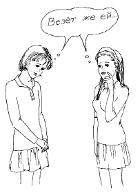 Тебе кажется, что ты совсем одна, и ты стараешься проводить большую часть времени со своими подругами, с которыми можешь поговорить о том, что вам особенно интересно. Но иногда выясняется, что у них есть проблемы с родителями, как и у тебя, а у некоторых, по их рассказам, вообще, такие родители, по сравнению с которыми твои, оказывается, просто замечательные и очень тебя любят.