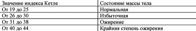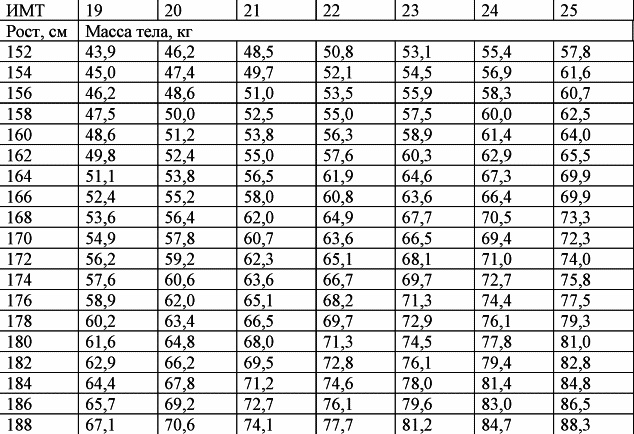 Таблица 3. Значение ИМТ, соответствующих нормальной массе тела.