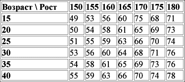 Оптимальные значения веса для гипостеников, соответствующие определенному возрасту и росту, приведены в следующей таблице: