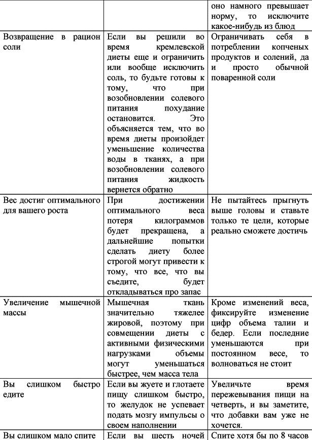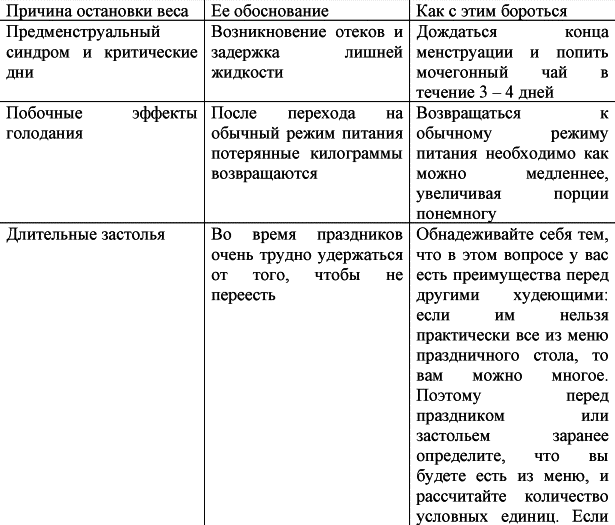 Определить, что стало причиной остановки веса в вашем случае, поможет следующая таблица: