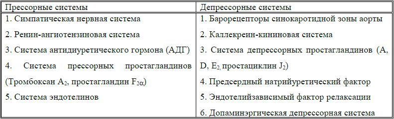 2) депрессорные механизмы, сосредоточенные в мозговом слое почек и стенках резистивных сосудов.