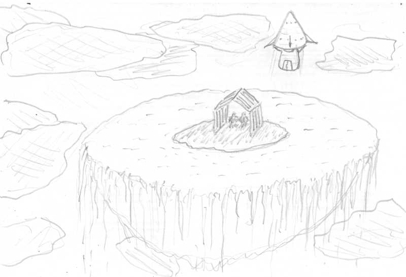 Он был не очень большой где-то метров 80 в диаметре, только поверхность его покрывало озеро, воды которого подобно водопаду стекали вниз и исчезали среди облаков, как бы превращаясь в них. В центре летающего острова располагался клочок суши, покрытый словно ковром мягкой шелковистой травой. А прямо по середине был коричневый шатер, стены которого, как кроны деревьев, и с таким же мягким травяным покровом для сидения или лежания внизу. Грибо-подобный шаттл высадил Антареса и Адриана прямо у шатра и совершенно бесшумно улетел вверх, скрывшись среди белых облаков. Антарес расположился сам, сев в позу со скрещенными ногами, и указал место подле себя. Сам он посмотрел на гладь светло-серой воды туда, где было небольшое ее возмущение. Через некоторое время прямо из глубины показалось вначале голова, затем грудь и в конце при приближении открылась вся фигура совершенно голого лысого молодого мужчины, который, двигаясь неспешно, шел в воде к берегу и, наконец, вышел на него. Мужчина тот не имел абсолютно никаких половых признаков. Он подошел к гостям и сел подле них, так же скрестив ноги.