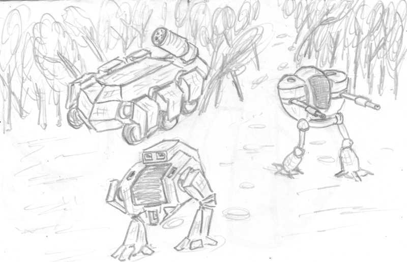 На гребне холма, тем временем показались 2 вражеские машины. Это были тяжелые 40-тонные «Гермесы». Осмотревшись они тут же влупили прямой наводкой из среднекалиберных роторок в пытающегося скрыться в дыму уже раненного «Спайдервилса». Тот получил несколько прямых попаданий, лишившись еще одной ноги, но совладал и нырнул глубже в кустарник.