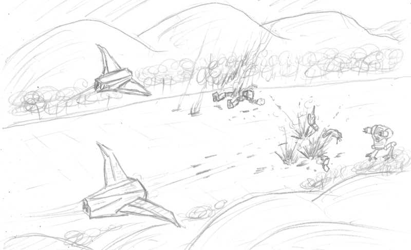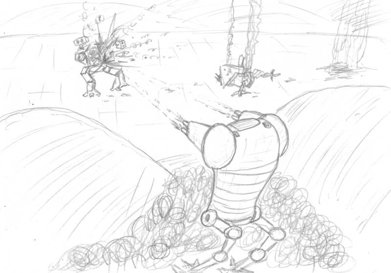 Оставшиеся 2 «Гуча» ударили по «Байпа». Первый огненный веер из стержней пронзил широкую голову юнионовской машины, повредив тяжелый пульсар. Второй прошелся по вращающимся пилонам роторных орудий и кабине пилота, чем вызвал разгерметизацию и возгорание в самом кокпите. Отстрел капсулы с пилотом произошел автоматически. От окончательного разгрома колонны спас «Гоблин», который из-за навеса поросли холма, оказался незамеченным вовремя атакующими. Он резко прыгнул уже в след уходящих «файтеров» и, орудуя двумя своими легкими пульсарами повредил ускоритель и крыло замыкающего космолета. Тот, потеряв управление, стремительно рухнул у самой макушки холма, испустив черный плотный дым. «Горбун», который так же оказался незамеченным, не успел никак среагировать. Зато внезапно вмешался лежащий на боку с висящими на ногах рем-дронами «Разведчик». Используя свою легкую ракетную установку он совершил немыслимое. Выстрелив полный пакет всего из 2-х ракет с авто-наведением, он успел изменить целеуказание, поймав в радар и таргетировав сразу 2 еще не успевших залететь за холм последних «файтера». Первая уверено детонировала прямо под брюхом у одного из «Гучей». Осколочный заряд моментально выпотрошил содержимое слабо-бронированной РРП пушки, повредив осколками заодно и левое крыло. Второму же «Гучу» ракета ударила прямо в хвостовую часть, разворотив двигатель множеством мелких частиц. На следующий заход для атаки оставшиеся «файтеры» не решились, верно посчитав, что им теперь уже ничего не светит. Однако дальнейший ход миссий терял всякий смысл. Второй тыловой дозор уже получил целеуказания от «Гучей» для задействования РПУ. Рой из 16-и бронебойных, бронебойно-зажигательных и осколочно-фугасных ракет ударил по квадрату, где замерла колонна, пытаясь наладить дальнейшее движение вперед. Под удар попал «Горбун», который в силу своей нерасторопности, решил использовать подавитель наведения, но против неуправляемых боеголовок он оказался малоэффективным. Множество раскатистых взрывов окутали его горбатую спину с тяжелым орудием. От очередного удара башню буквально сорвало и швырнуло куда-то в сторону. Робот объялся пламенем и затих. Одна из ракет зацепила голову командирского «Гладиатора» вызвав внутреннее возгорание с последующей детонацией мин, приведшей к летальному исходу для его пилота.