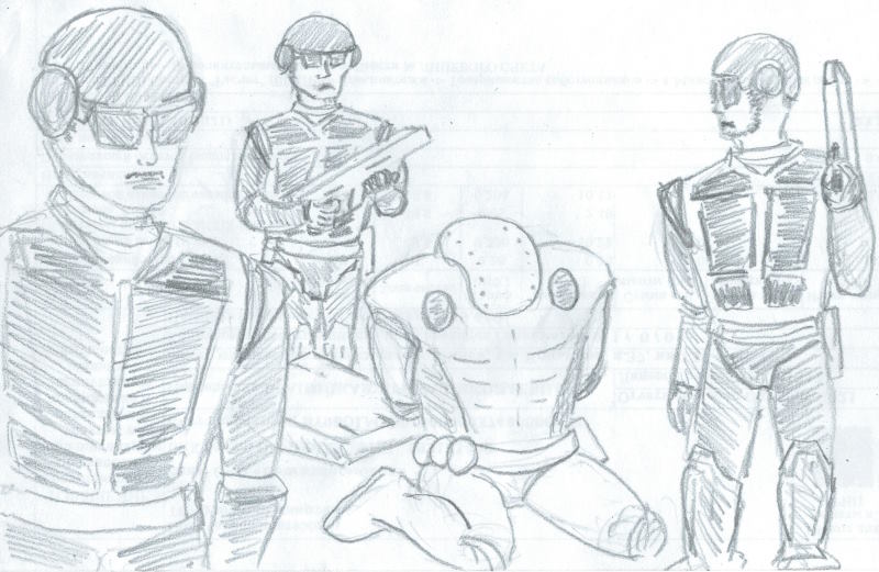 Сенсор экзо-шлема выхватил 3-х бойцов, которые держали его на прицеле. Однако Брод даже в мыслях не допускал ввязываться с ними в перестрелку. Ему в упор били лучи прожекторов, так как тут на блок-посту было достаточно темно из-за покрытия, представлявшего собой активный камуфляж, полностью скрывавший расположение от обнаружения «Канзату» или другими дронами дальней разведки. Слева «ожил» «Страж», который так же направил на него одно из своих орудий.